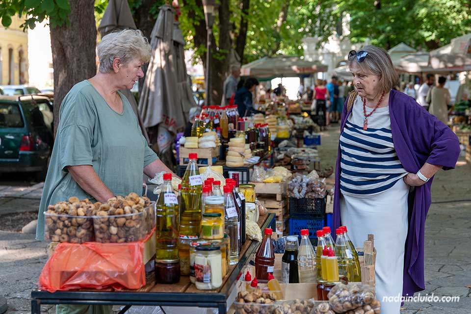 Menos lejos tuvimos que irnos para visitar la plaza de la Libertad (Slobode), una plaza cercana al casco antiguo que alterna un transitado mercado por las mañanas con terrazas y ocio por las tardes, lo que la convierte en uno de los espacios con más vida. En nuestra visita en 2025 estuvimos un buen rato en el mercado, echando fotos y comprando algo de «merienda» para el avión de vuelta.